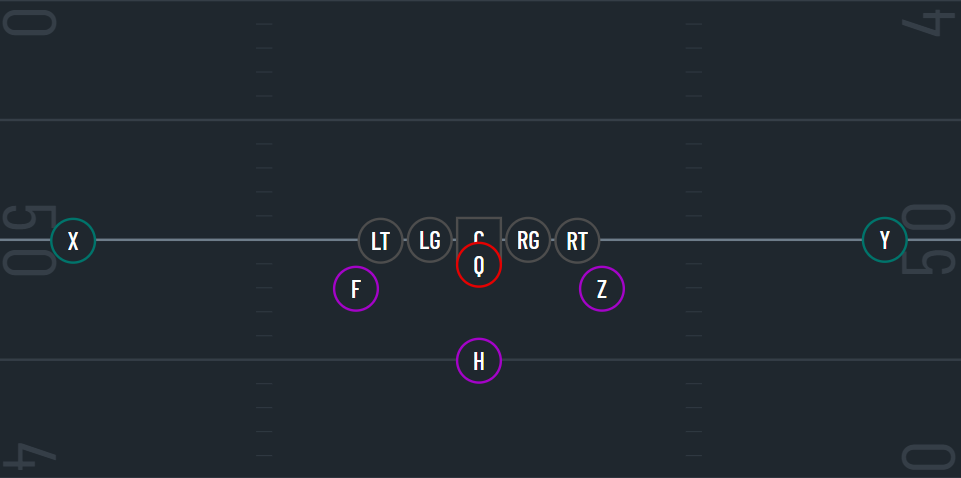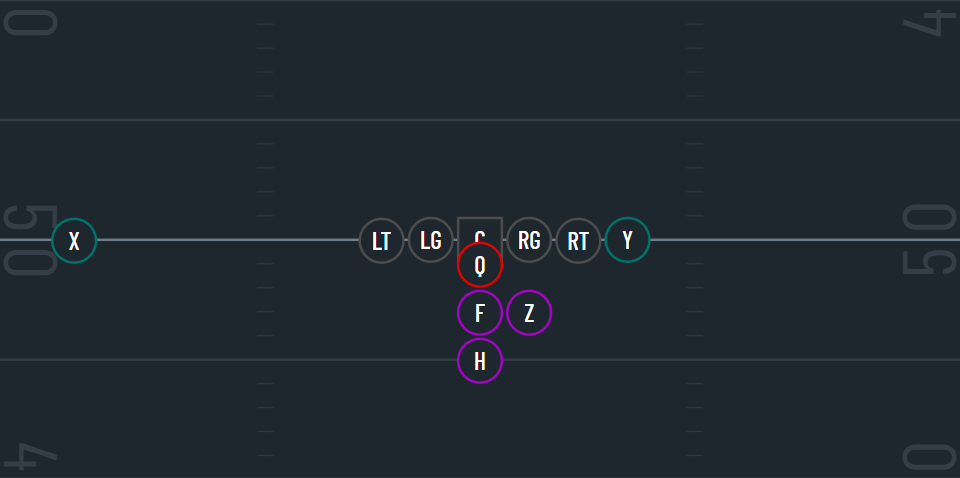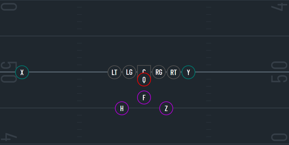 This formation typically features one of the running backs to either side and a back directly behind the QB.